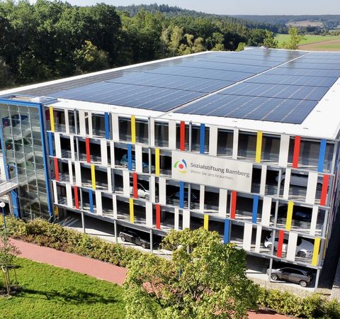 Der Klimawandel ist eine der größten Herausforderungen unserer Zeit. Durch die Reduktion unseres CO2-Ausstoßes, den Einsatz erneuerbarer Energien und klimafreundliche Mobilitätslösungen tragen wir aktiv zum Klimaschutz bei. Das Klinikum am Bruderwald ist hierfür beispielsweise mit einer Photovoltaik-Anlage sowie Blockheizkraftwerken ausgestattet. Auch beim Bau neuer Gebäude wie dem Kinder- und Jugendhospiz oder dem SancuraPark setzen wir auf moderne Standards und statten diese mit nachhaltigen Technologien zur Stromerzeugung aus.