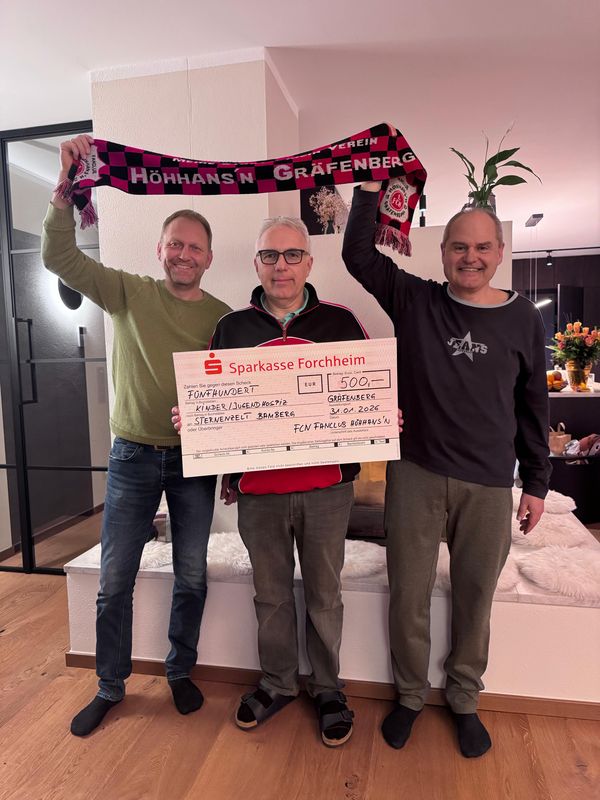 Der FCN Fanclub Höhhans’n Gräfenberg hat eine Tombola veranstaltet und spendet damit 500€ an das Kinder- und Jugendhospiz Sternenzelt.