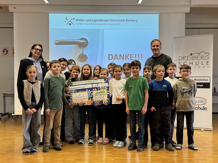 Die Dreiberg Schule Knetzgau hat bei einem Weihnachtsbasar 1.700€ gesammelt, die sie an das Kinder- und Jugendhospiz Sternenzelt spenden.