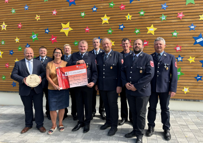 Anlässlich ihres 150-jährigen Jubiläums hat die Freiwillige Feuerwehr Poxdorf auf ein Geschenk ihrer Patenfeuerwehr Huppendorf verzichtet – und sich stattdessen für eine Spende an das Kinderhospiz Sternenzelt entschieden.