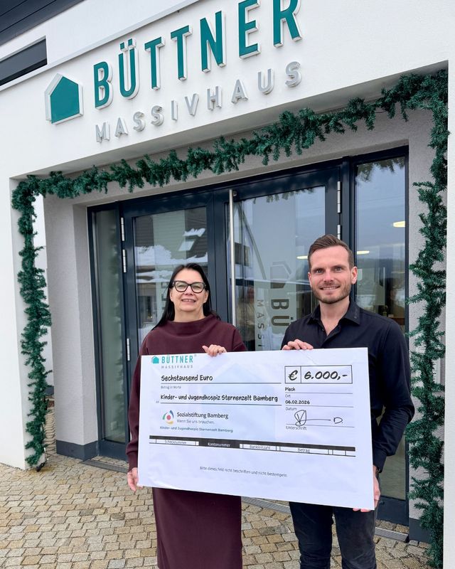 Die Firma Wohnhausbau Büttner Massivhaus spendet im Rahmen der Weihnachtsaktion „Spenden statt Schenken“ 6.000€ an das Kinder- und Jugendhospiz.