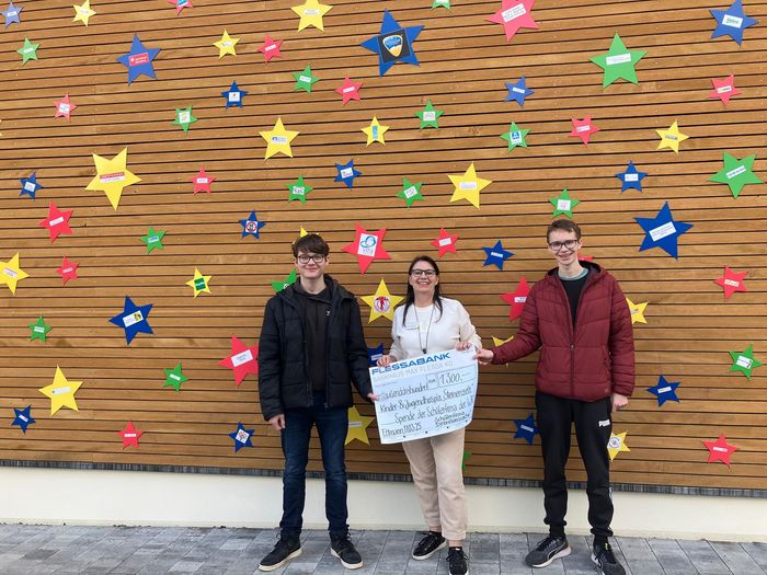 Tim und Petro sind Schüler an der Wallburg Realschule Eltmann. Im Rahmen des Projekts Schülerfirma konnte Tim und Petros Schülerfirma „Definitionssache“ stolze 1.300 € einnehmen, die sie nun zu an unser Sternenzelt spenden.