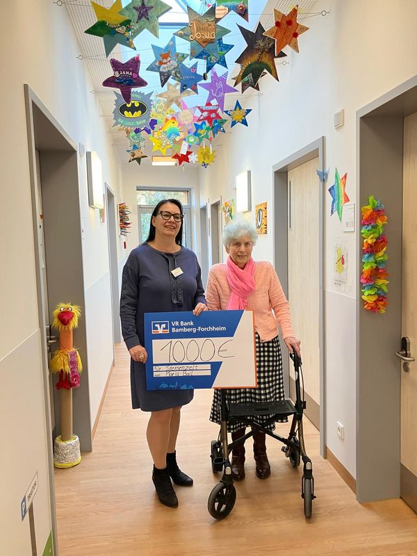 Anlässlich ihres 90. Geburtstages hat Frau Bail Spenden gesammelt, wobei insgesamt eine Spende von 1.000 € zustande gekommen ist.