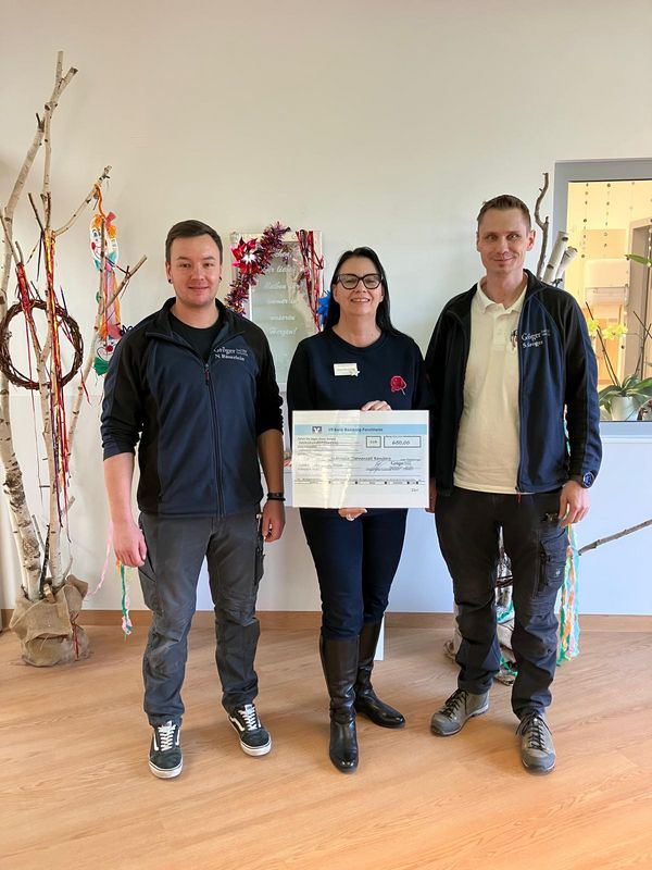 Die Firma Gröger spendet 650 €. Chef Stefan Gröger hat auf der Weihnachtsfeier der Firma Werbegeschenke an die Mitarbeitenden versteigert, wovon der Erlös uns zugutekommt.