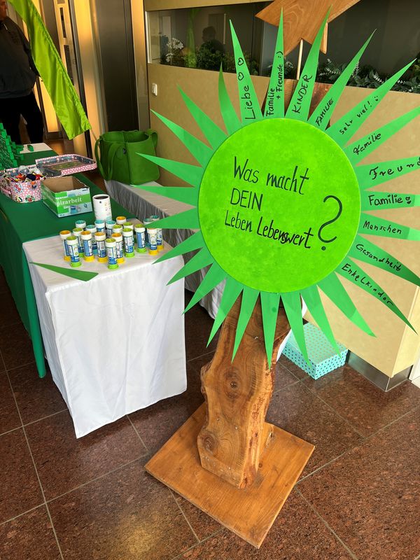 Neben Informationen über den Alltag im Kinder- und Jugendhospiz und seine Angebote erhielten die Besucherinnen und Besucher des Aktionsstandes grüne Bänder und Glitzersterne als Zeichen der Solidarität und Verbundenheit mit der Kinderhospizarbeit. Denn Grün ist die Farbe der Kinderhospizarbeit.