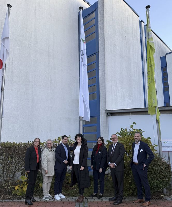 Den symbolischen Höhepunkt bildete das gemeinsame „Flagge hissen“ – als sichtbares Zeichen für den neuen Aufbruch in der Pflegeausbildung in Oberfranken. Beim anschließenden Get-together nutzten Gäste und Beteiligte die Gelegenheit zum Austausch und zur Vernetzung.