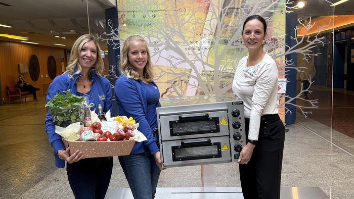 Damit die erste Pizza auch gleich gut gelingt, war bei der Spendenübergabe ein Präsentkorb mit allen Pizzazutaten dabei.