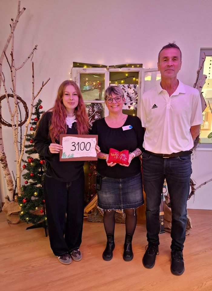 Die Schüler und Lehrer der Martin-Wiesend-Schule Bamberg haben bei einem Weihnachtsbasar gesammelt und spenden Gutscheine im Wert von 1.100€.