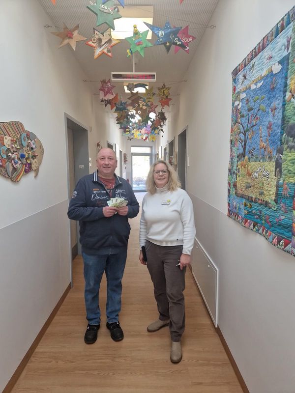 Herr Kunzelmann spendet anlässlich seines 60. Geburtstages 600€ für Therapiespielzeug und Fördermaterial.