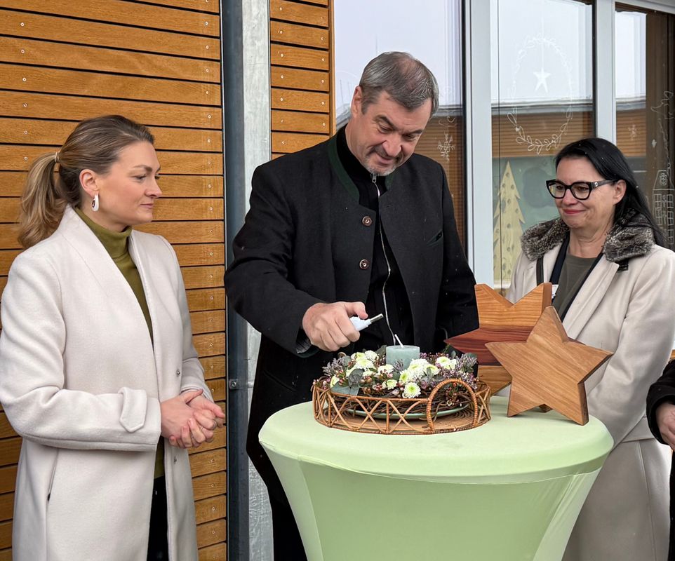 Im Rahmen des Besuchs stellten Martin Wilde, Vorstandsvorsitzender der Sozialstiftung Bamberg, und Einrichtungsleiterin Beate Neumeister die Arbeit des Kinder- und Jugendhospizes vor. Zur Erinnerung an ihren Besuch überreichten sie dem Bayerischen Ministerpräsidenten und der Gesundheitsministerin jeweils einen Stern aus Holz.
